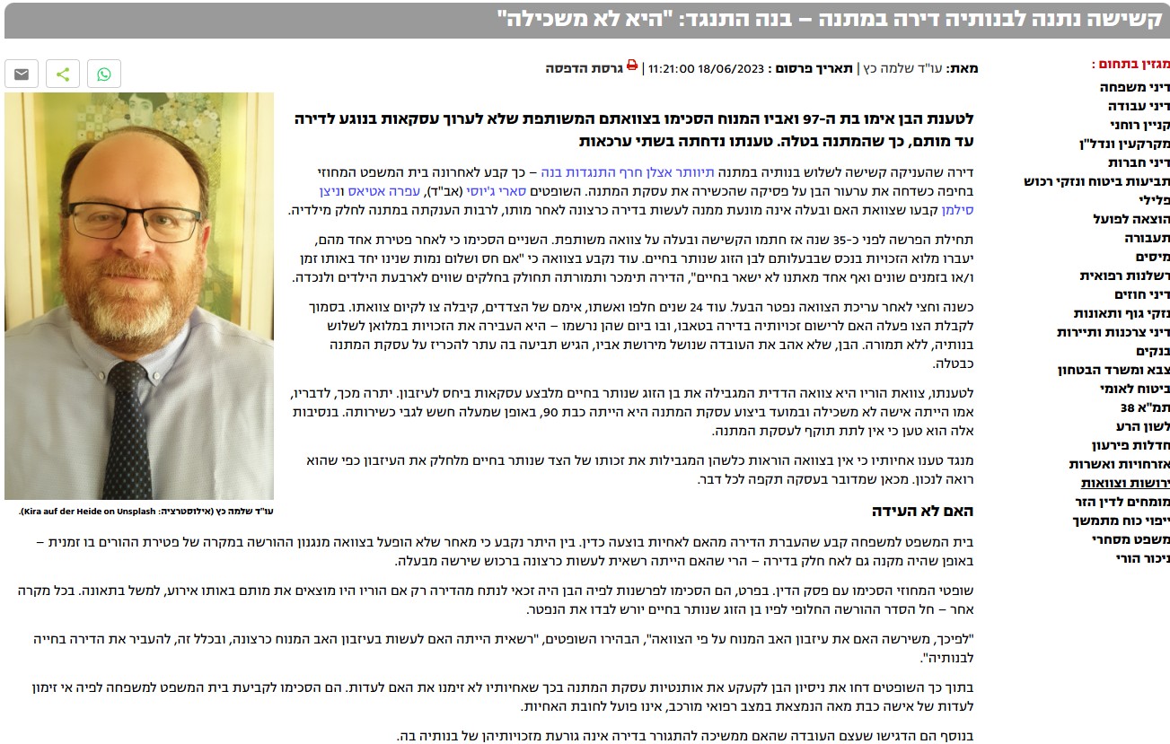 קשישה נתנה לבנותיה דירה במתנה – בנה התנגד: "אישה לא משכילה"